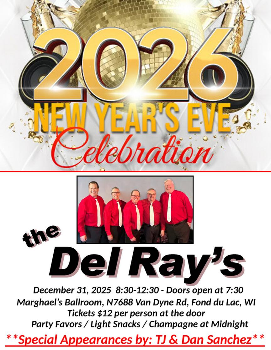 Dec 31**** Marghaels Ballroom-!! New Year's Eve with TJ and Dan Sanchez !! Fond du Lac 8:30 - 12:30